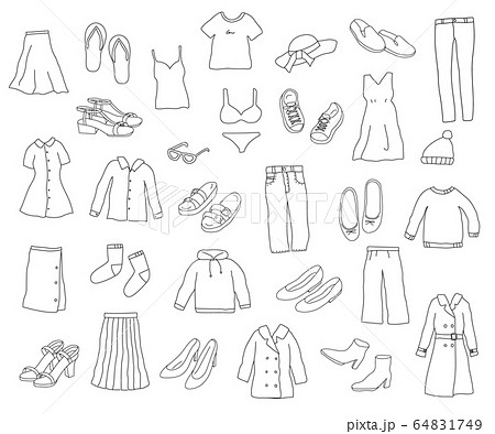 ファッションの手描きイラストのセット/靴/服/線画