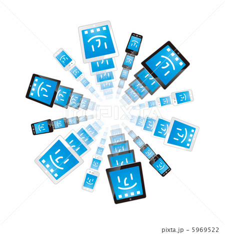 たくさんのタブレットPCとスマートフォン