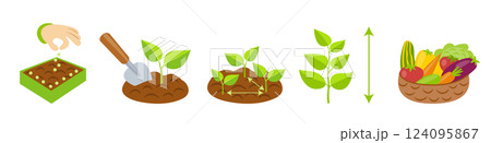 Plant growth stages infographics. Planting instruction template. Vegetables growth process. Planting rules