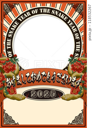 フォトフレーム 年賀2025 年賀状2025 福助人形 巳年 巳 へび かわいい イラスト素材