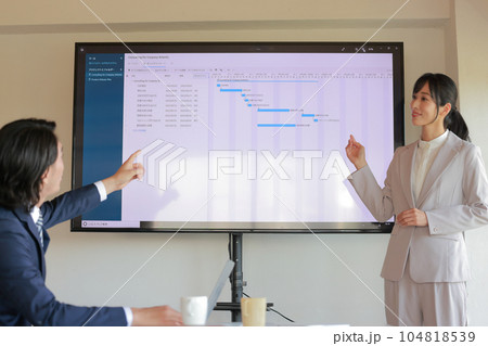 プロジェクトのスケジュールを打ち合わせるビジネスパーソン男女_1