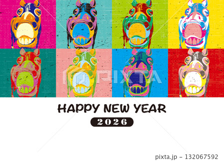 2026フォトフレーム年賀状「ポップアート風デザイン」ハッピーニューイヤー 英語添え書き付パターン