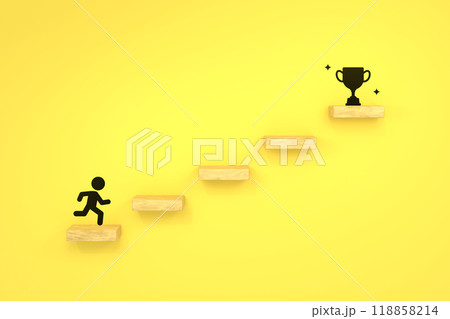 トロフィーに向かって一歩ずつ登る人の黄色背景画像