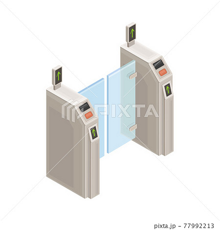 Baffle Gate or Turnstile as Passing Gate for One-way Traffic in Metro or Subway as Rapid Transit Urban System Isometric Vector Illustration