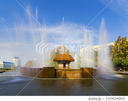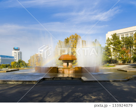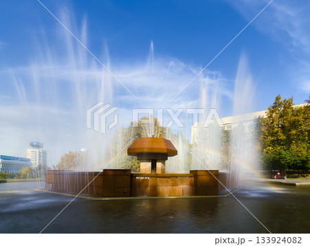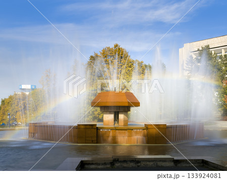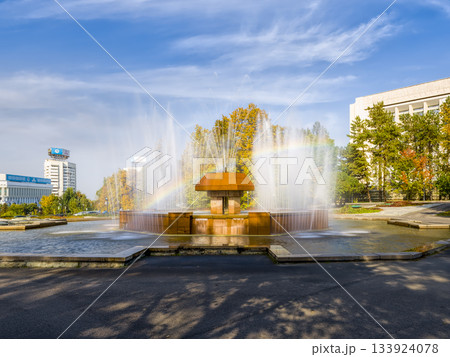秋晴れの公園の噴水と虹~カザフスタン・アルマトイ / Almaty, Kazakhstan