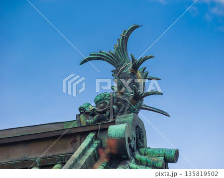 弘前城天守の屋根を飾る鯱と青空 (青森県、弘前市)
