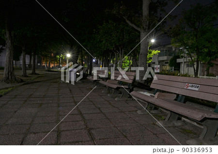 夜の公園イメージ ベンチと広場と外灯