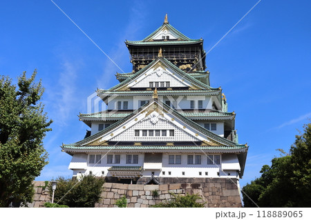 青空バックにそびえる大阪城の天守閣@大阪