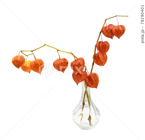 Physalis Alkekengi plant. Chinese lantern or ground berry. Authentic home decor in minimalist style.