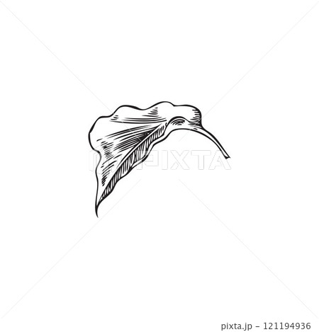Physalis plant one leaf falling engraved sketch vector icon, hand drawn natural herb foliage, botanical floral element