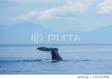 Sperm whale diving into water. Southern coast of San Miguel, Azores