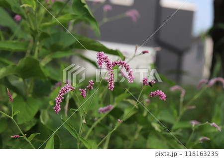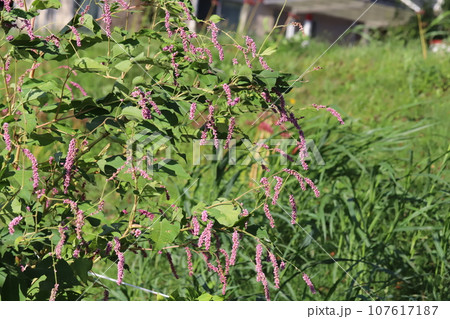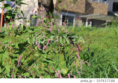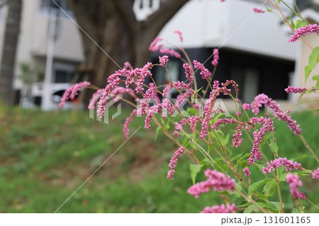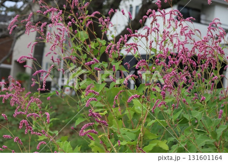 日本の秋の公園に咲く赤紫色のオオケタデの花