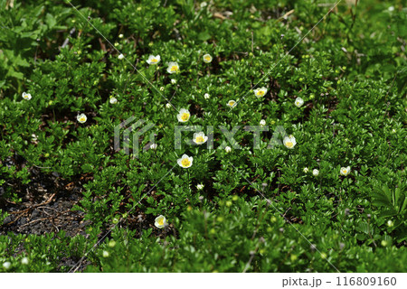 長野県の北アルプスの燕山荘付近に繁殖するミヤマキンポウゲ