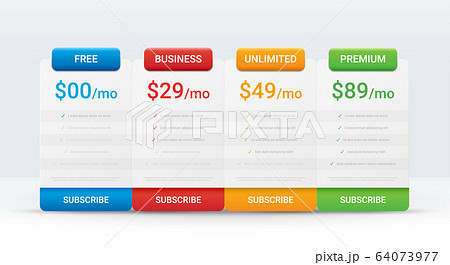 Comparison pricing list. Comparing price or product plan chart compare products busines