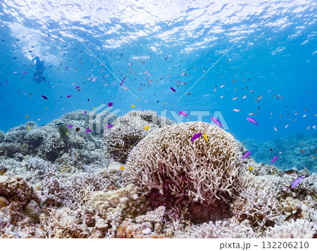 ハナゴイ他群れ。美しいサンゴ礁と熱帯魚の群れ。 沖縄県島尻郡慶良間諸島座間味島安室島-2025