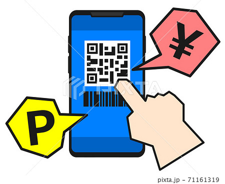 QRコードでスマホ電子決済をするイラスト