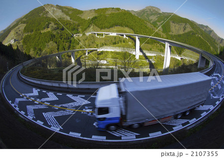 雷電廿六木橋(秩父ループ橋)を渡るトラック