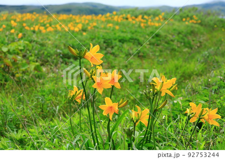 初夏の富士野園地 エゾカンゾウの花と利尻山