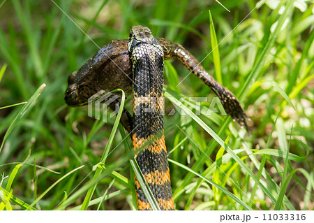 蛙を飲み込んだヘビ