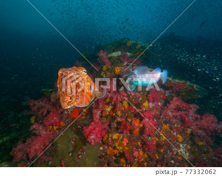 繁殖期のトラフコウイカ (リチェリューロック、スリン諸島、タイ王国)