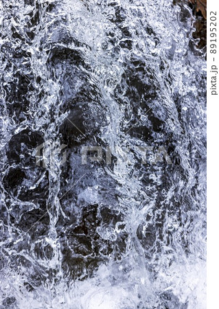岩場を流れ落ちる清流と白い水しぶき