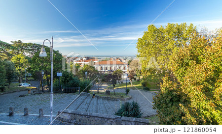 Railway station and park in beautiful town of Albano Laziale timelapse hyperlapse, Italy