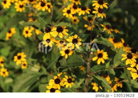 日本の夏の公園に咲くルドベキアタカオの黄色い花