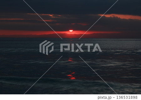 【日の出素材】富山県雨晴海岸から見る日の出【富山県】