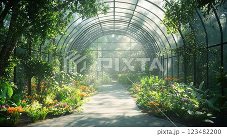 Futuristic Greenhouse with Digital Roses and Butterflies