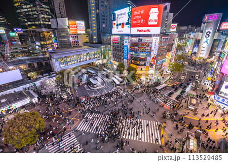 日本の東京都市景観 桜…インバウンド復活…外国人観光客で賑わう渋谷…桜も満開。希望の時代へ=4月5日