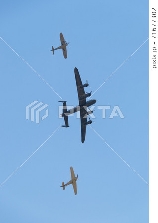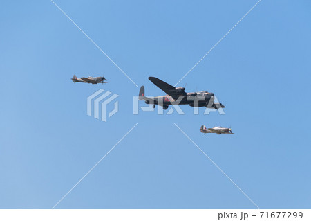 イギリス空軍ランカスター スピットファイア ハリケーン編隊上昇