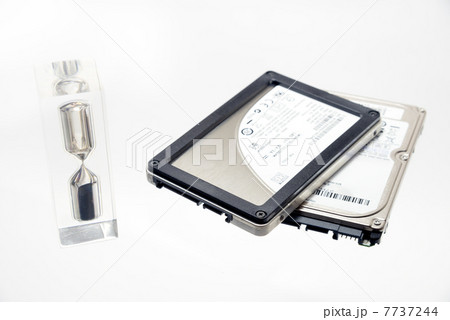 パソコン・フリーズ/速度イメージ:ハードディスクとSSDと時計