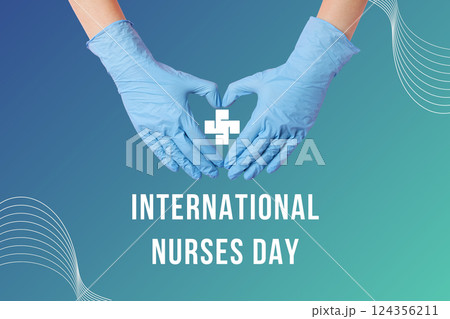 Greeting card celebrating Nurse Day with medical elements and hearts, isolated on white
