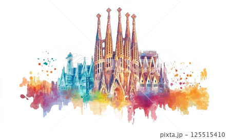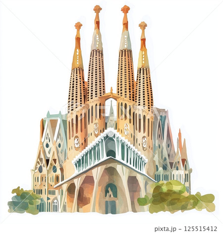 アントニオ・ガウディのサグラダ・ファミリア教会のイラスト 世界遺産、観光名所 ベクターデータ