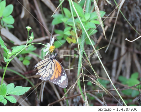 生き物 昆虫 スジグロカバマダラ、八重山では年中飛んでいますが花壇の花よりセンダングサが好きそうです