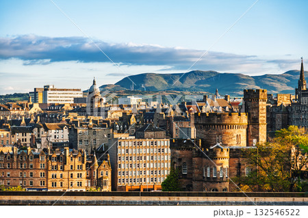 Edinburgh cityscape with Arthurs Seat in the background Scotland UK