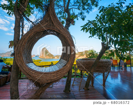 屋上カフェの籠型椅子 (サメットナンシー・ビューポイント、パンガー県、タイ)