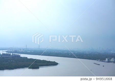 タイ王国バンコク近郊、サムットプラカーン市展望台からの眺め