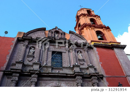 Guanajuato City, Mexico, aerial view of historical buildings. Close up of Templo de San Felipe Neri