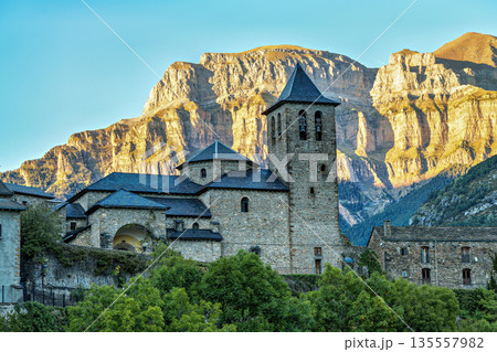 Church of Torla, door to the Ordesa National Park in the Pyrennes close to the border between Spain and France.
