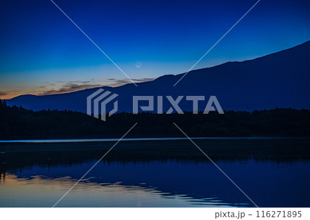 (山梨県)夜明け前の本栖湖から望む富士山