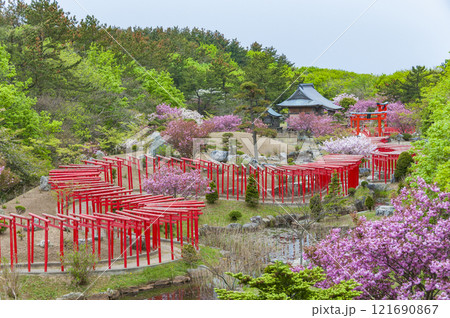 千本鳥居と満開の桜 丸高稲荷神社 和歌山県橋本市