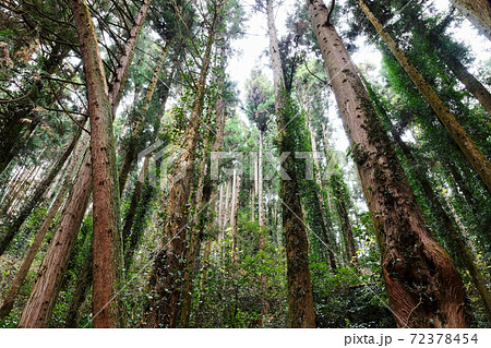 mysterious view heavenward in the Sengenyama forest near the Ranzan valley, Japan