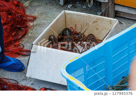 本命のイセエビが穫れた。 伊勢海老の刺し網漁に同船した。 伊豆半島賀茂郡南伊豆町中木ヒリゾ浜2024