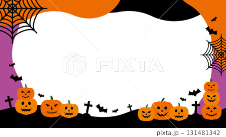 かわいいハロウィンの白フレーム背景ベクターイラスト素材【文字あり】【横長】