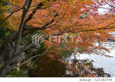 田原市にある田原城跡の田原城桜門と紅葉の風景(愛知県)