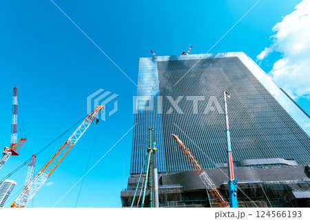 建設中のビルと数々のクレーン 高輪ゲートウェイ 2025.03 j-2 高彩度コントラスト