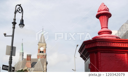 New York City street. Manhattan Greenwich village, USA. Jefferson Market Library, Courthouse clock.
