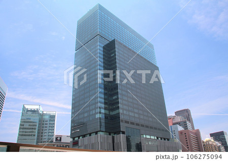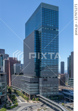 JR大阪駅直結、旧大阪中央郵便局跡地に立つ晴天のJPタワー大阪(KITTE大阪)外観。梅田駅隣接