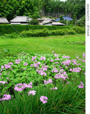 ツルバキアの花咲く里山風景